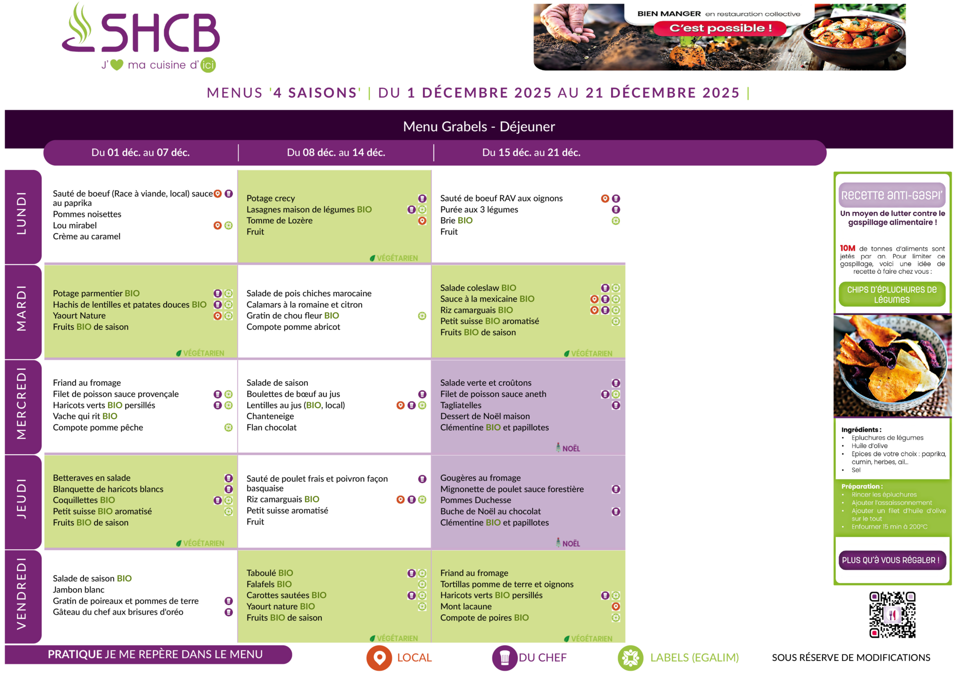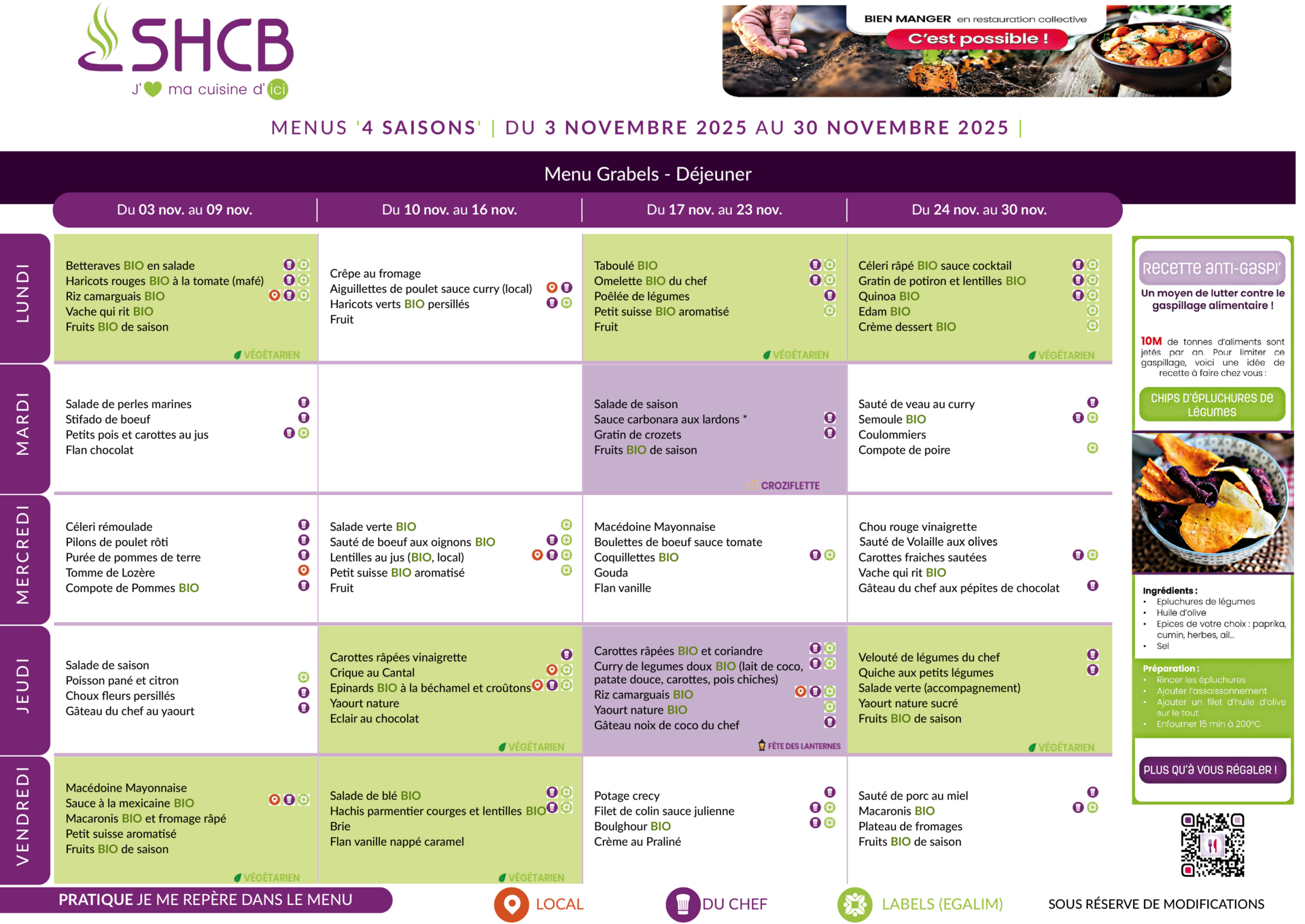 Menus du restaurant scolaire