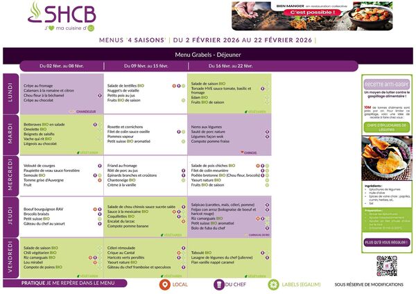 La ville de Grabels confie à la société SHCB la prestation de confectionner et livrer les repas pour les cantines scolaires et le centre de loisirs.