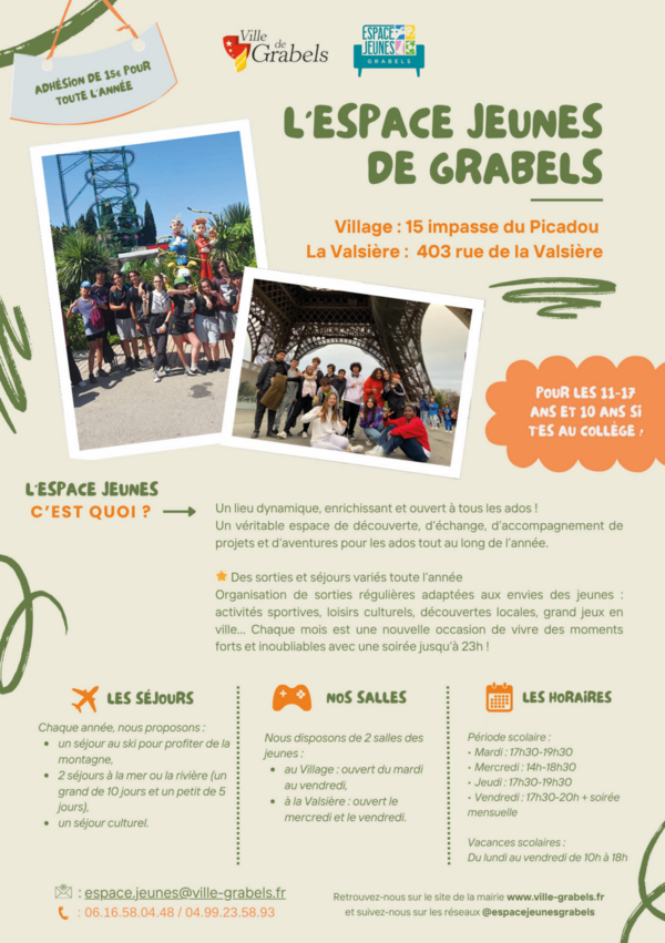 Cette adhésion permet de fréquenter l’espace jeunes sur tous les temps d’ouverture.