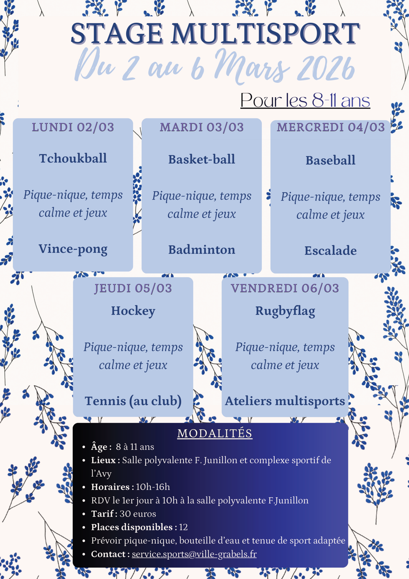 Renseignements et inscriptions : service.sports@ville-grabels.fr / 06 16 90 84 40