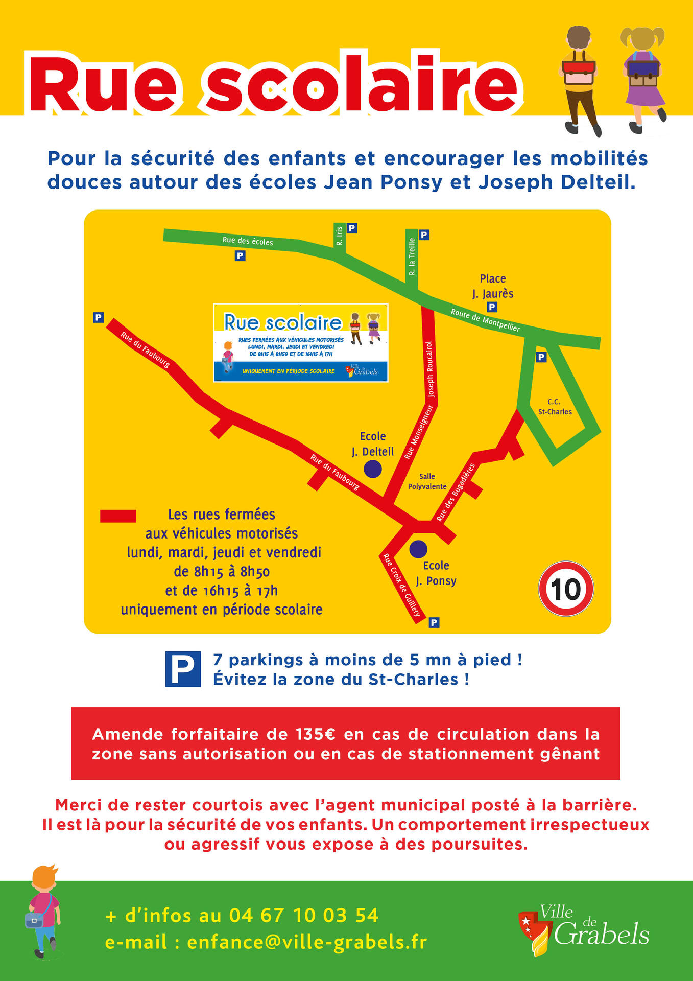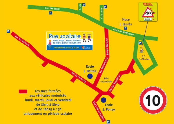 Les rues scolaires sont mises en place aux abords des écoles Jean Ponsy et Joseph Delteil de 8h15 à 8h50 et de 16h15 à 17h.