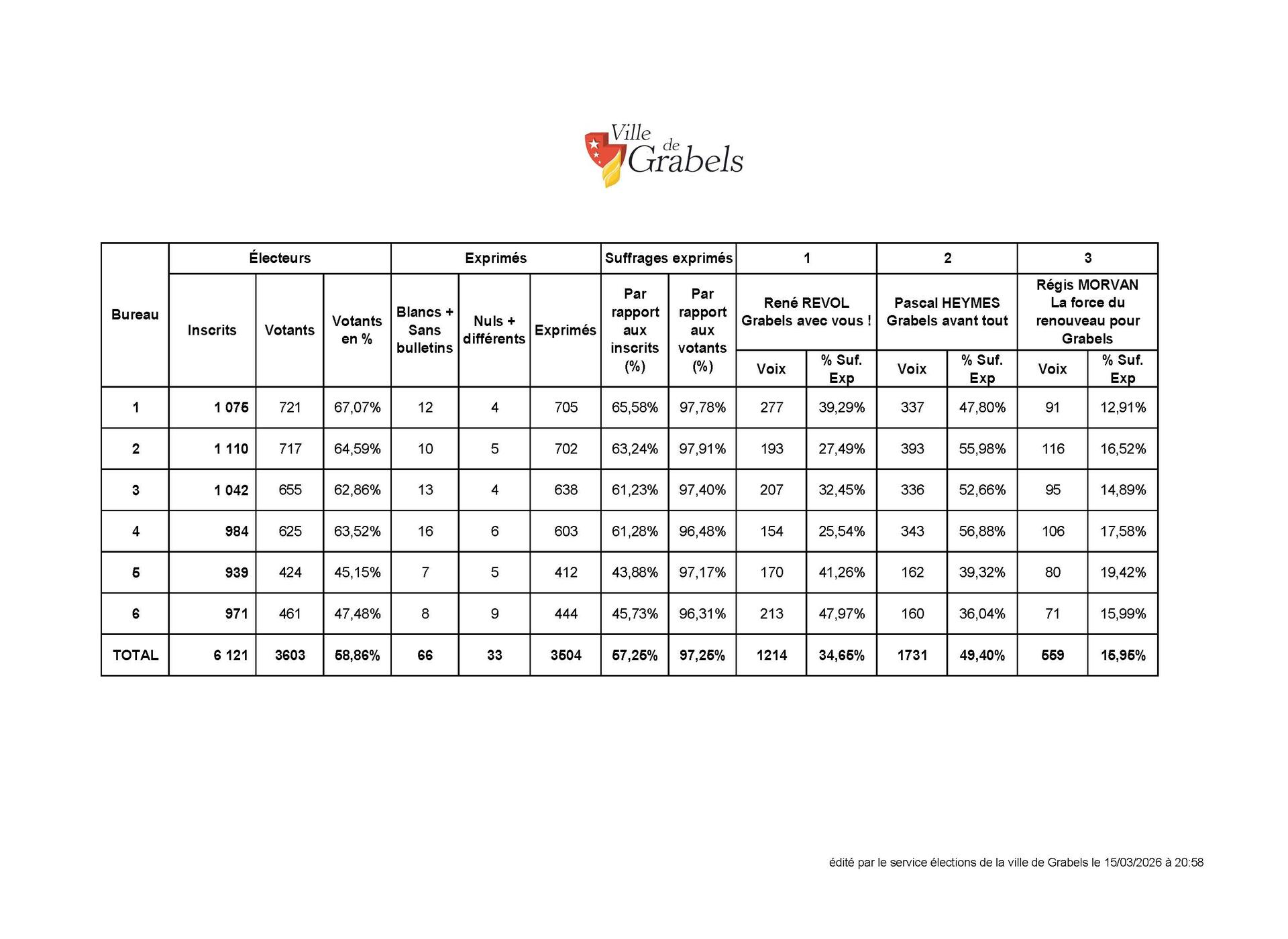 Résultats du 1er tour des élections municipales à Grabels