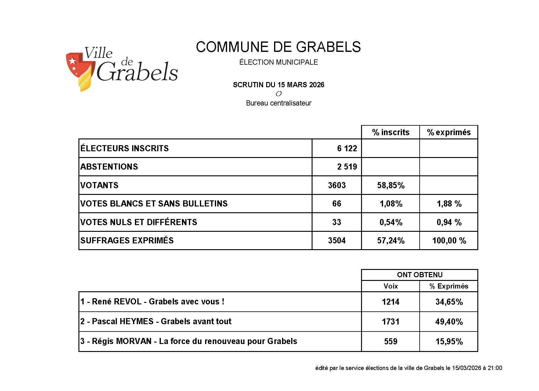 Liste « Grabels avant tout » : 49,40%
