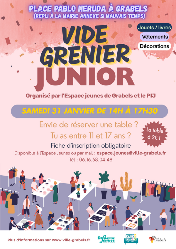 Le Point Info Jeunesse et l'Espace Jeunes organisent leur vide grenier junior le 31 janvier après-midi salle Richard Campos.