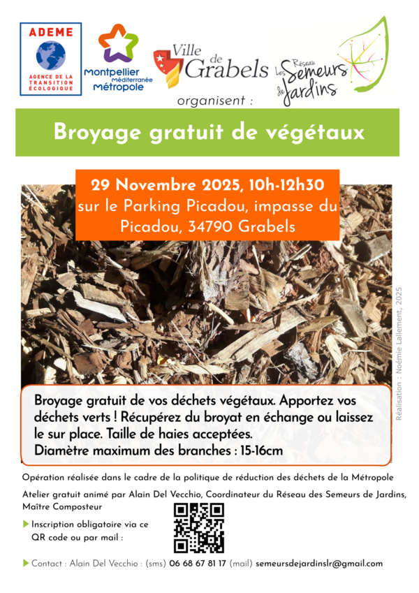 Récupérez ensuite gratuitement du broyat pour enrichir le sol au pied de vos plantations : samedi 29 novembre de 10h à 12h30 avec le Réseau Les Semeurs de Jardins
